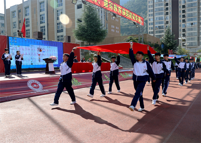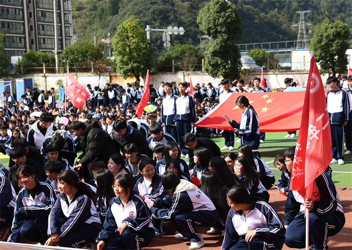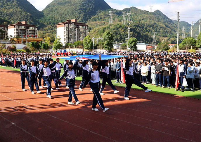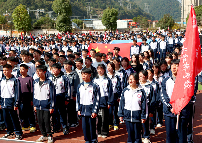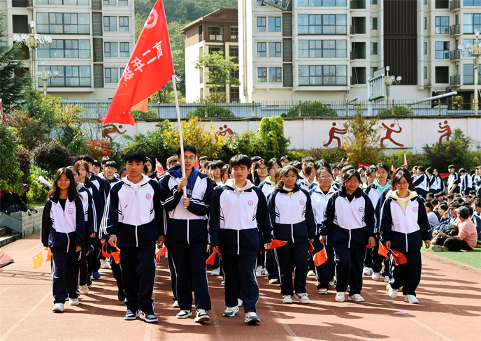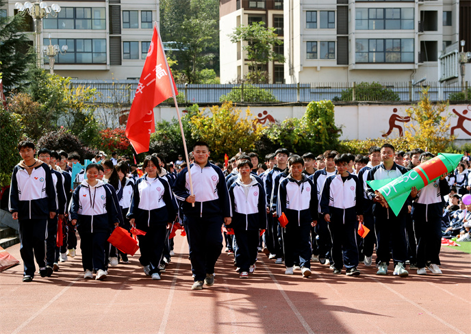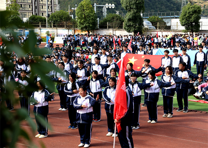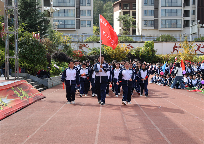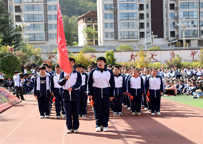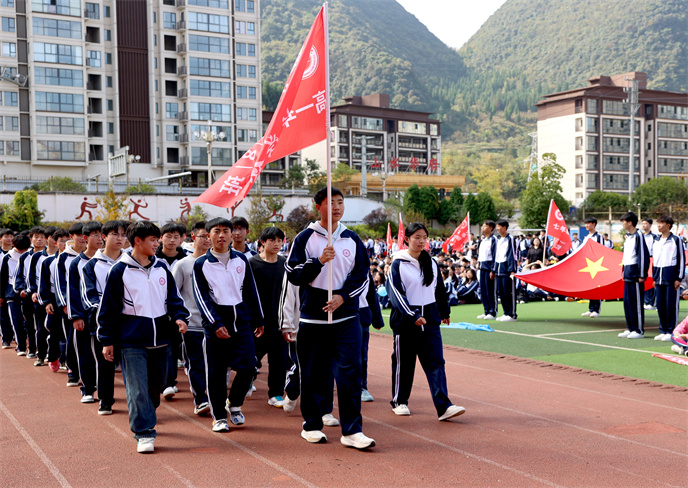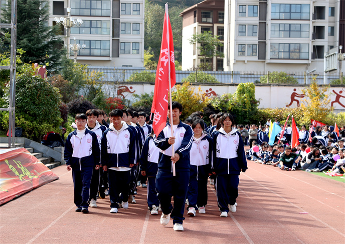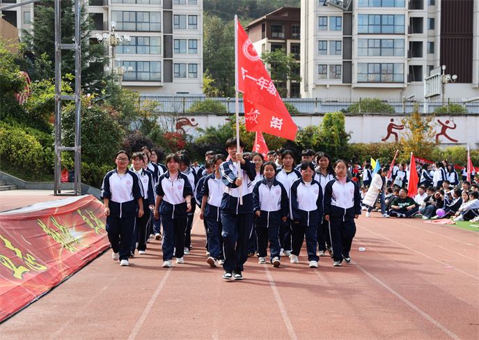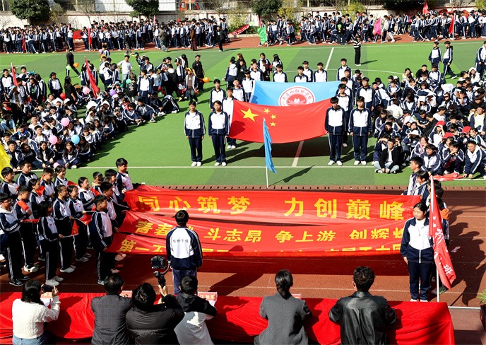 開(kāi)幕式在雄壯的運(yùn)動(dòng)員進(jìn)行曲中拉開(kāi)帷幕。首先,由學(xué)生代表組成的國(guó)旗、校旗、彩旗方陣邁著堅(jiān)定有力的步伐率先入場(chǎng)。他們目光如炬,身姿挺拔,鮮艷的旗幟在冬日的晴空中獵獵飄揚(yáng),象征著莊嚴(yán)與榮耀。