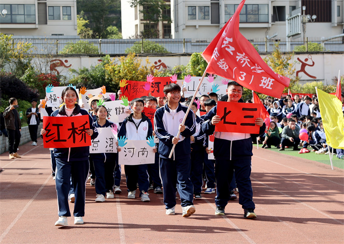 隨后,各年級(jí)、各班級(jí)的運(yùn)動(dòng)員方陣依次亮相!班級(jí)的開(kāi)場(chǎng)或舞蹈、或朗誦、或歌曲、或舉標(biāo)語(yǔ),或舉創(chuàng)意手工品……他們用獨(dú)特的方式詮釋著班級(jí)文化與體育精神。整齊劃一的步伐,自信昂揚(yáng)的笑容,青春的活力在操場(chǎng)上肆意綻放,匯成一幅流動(dòng)的青春畫(huà)卷!