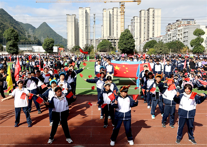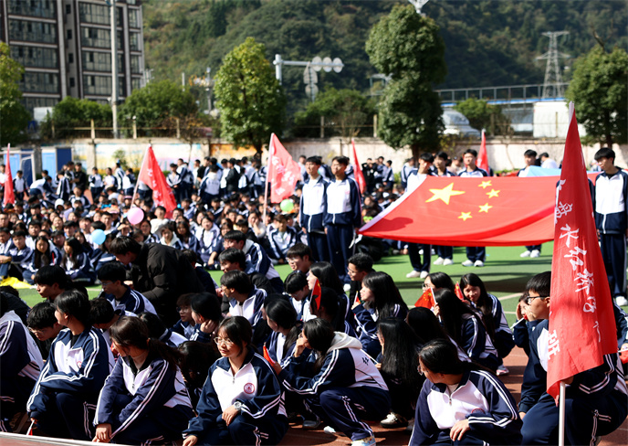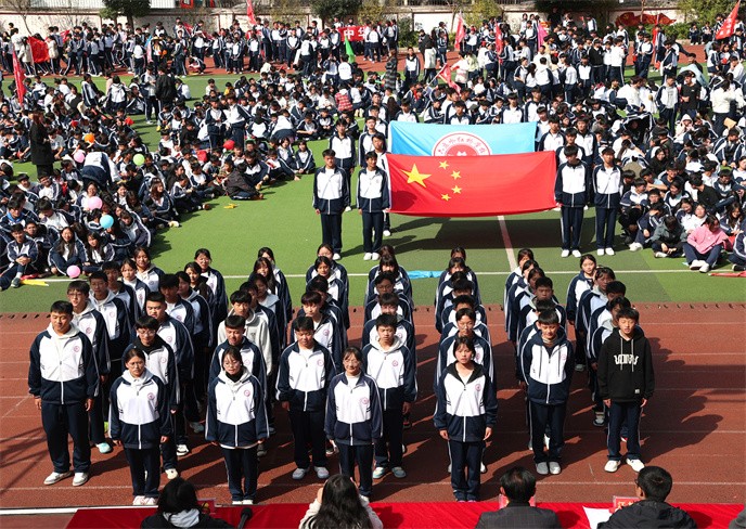在全體師生的注目下,升旗儀式隆 重舉行。伴隨著雄壯的《義勇軍進(jìn)行曲》,五星紅旗冉冉升起,迎風(fēng)飄揚(yáng)。全體師生莊嚴(yán)肅立,齊聲高唱國(guó)歌,嘹亮的歌聲響徹校園,濃濃的愛(ài)國(guó)情懷在每個(gè)人心中激蕩,為這場(chǎng)體育盛會(huì)注入了莊重而奮進(jìn)的底色。